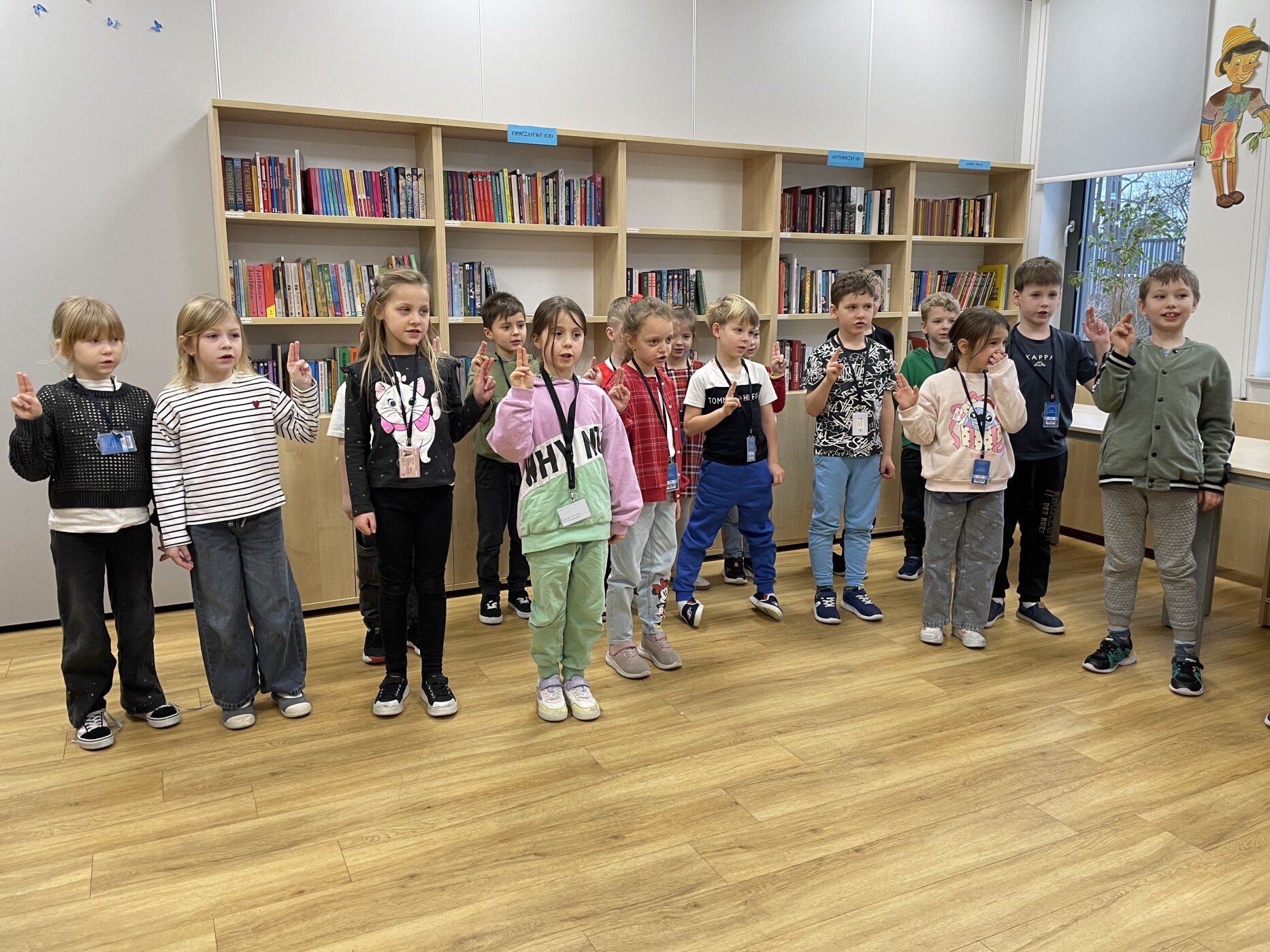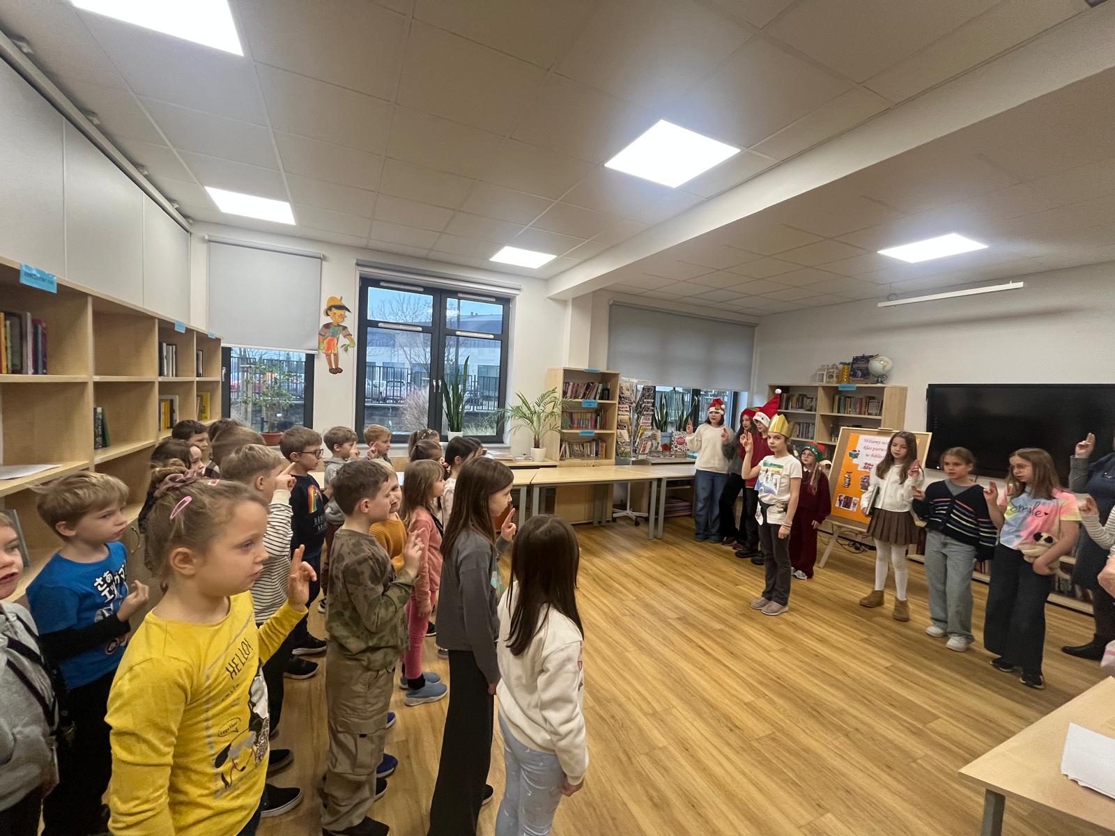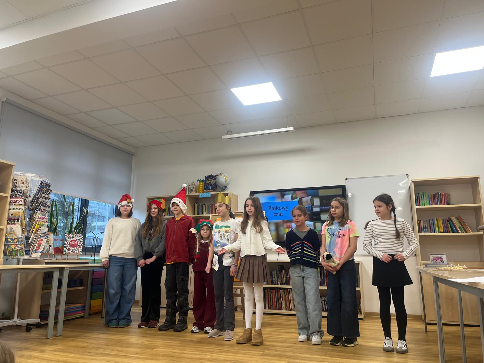 Zaprezentowany program artystyczny ułożony został na podstawie tekstów Kornela Makuszyńskiego. Piosenka w wykonaniu młodych artystów pod tytułem „Bajkowy Czar” zakończyła lekcję biblioteczną.