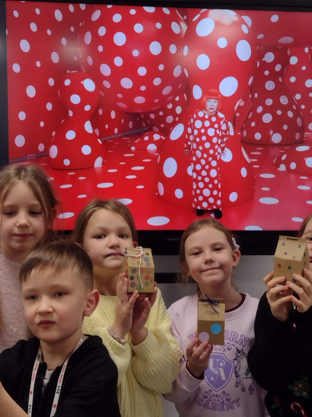 Znakiem rozpoznawczym Kusamy są kropki , którymi pokrywa niemal wszystkie swoje prace.