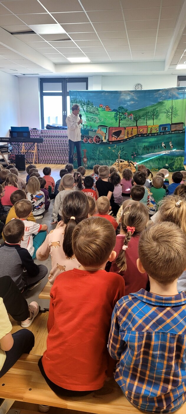 6 listopada dzieci z oddziałów przedszkolnych uczestniczyły w teatrzyku pt. „Wesoły pociąg instrumentów”.
