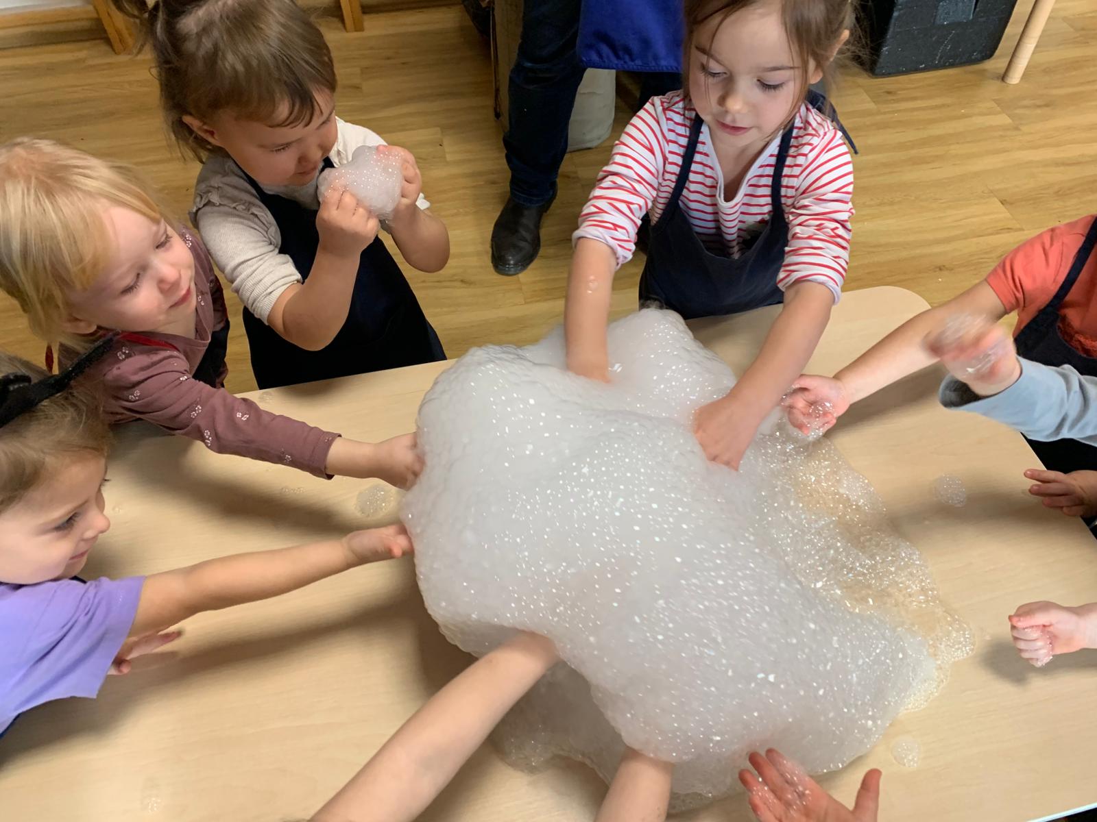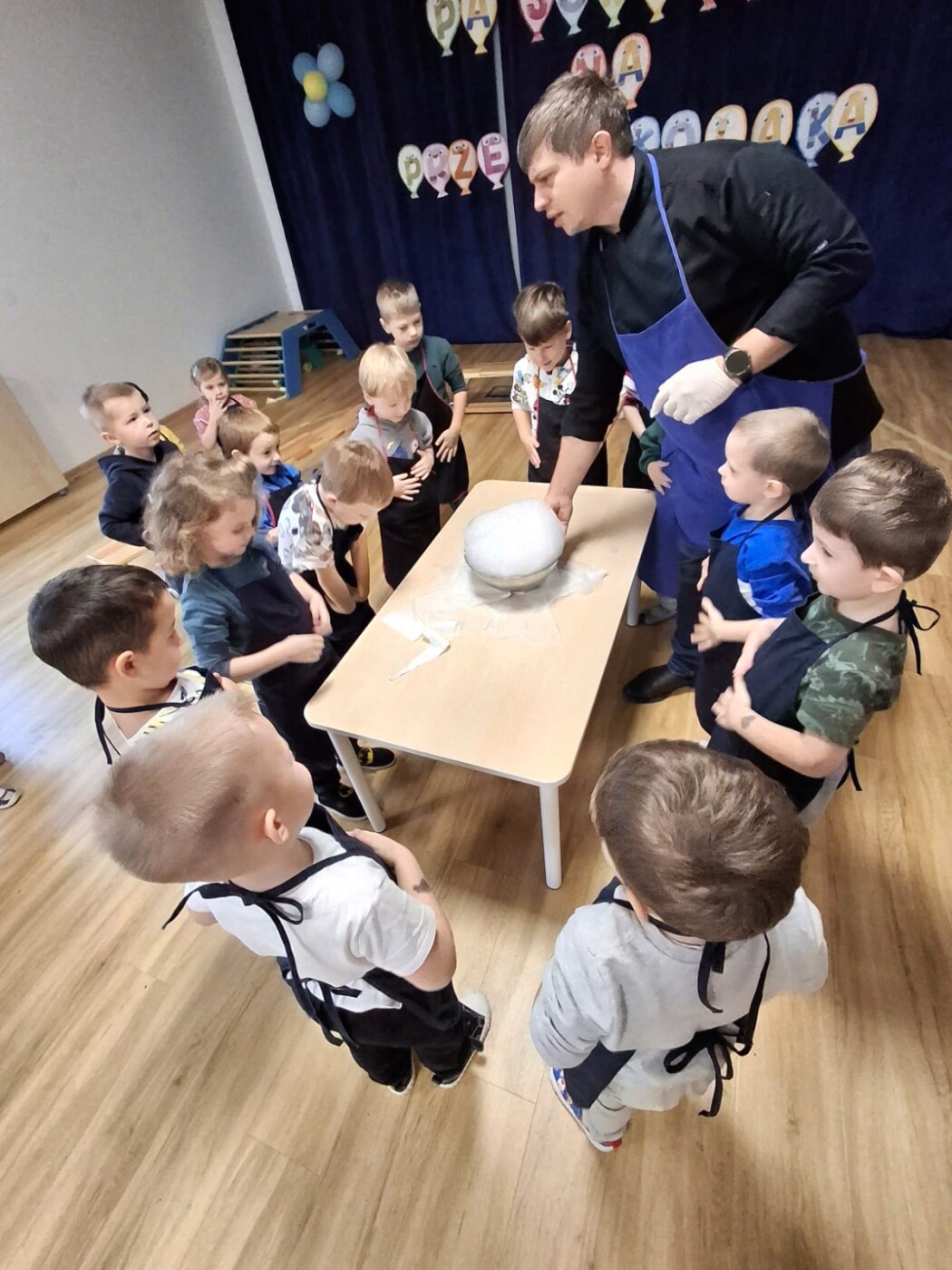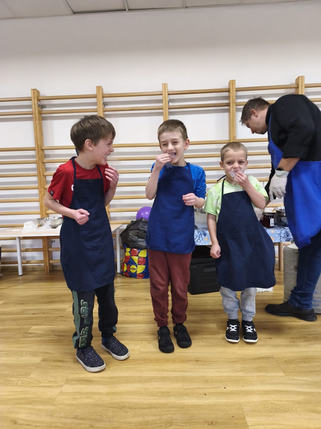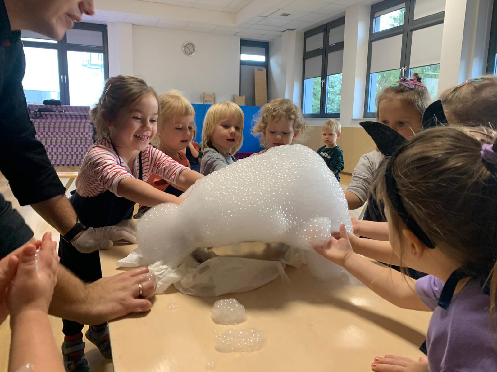 Dzieci ze wszystkich grup oddziałów przedszkolnych brały udział w warsztatach kulinarno- chemicznych. Piły " magiczny napój", jadły " mrożącego chrupka" oraz na koniec wyczarowały sorbet owocowy! Doświadczenia z kuchni molekularnej z ciekłym azotem, połączone z wrażeniami smakowymi gwarantowały świetną zabawę!