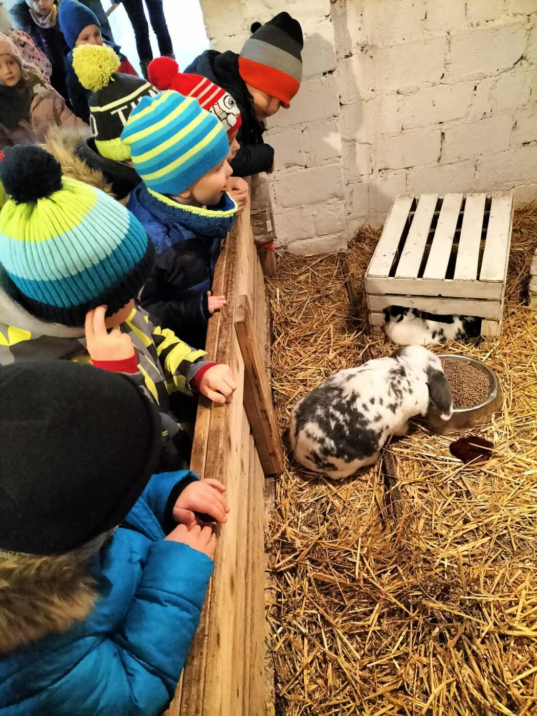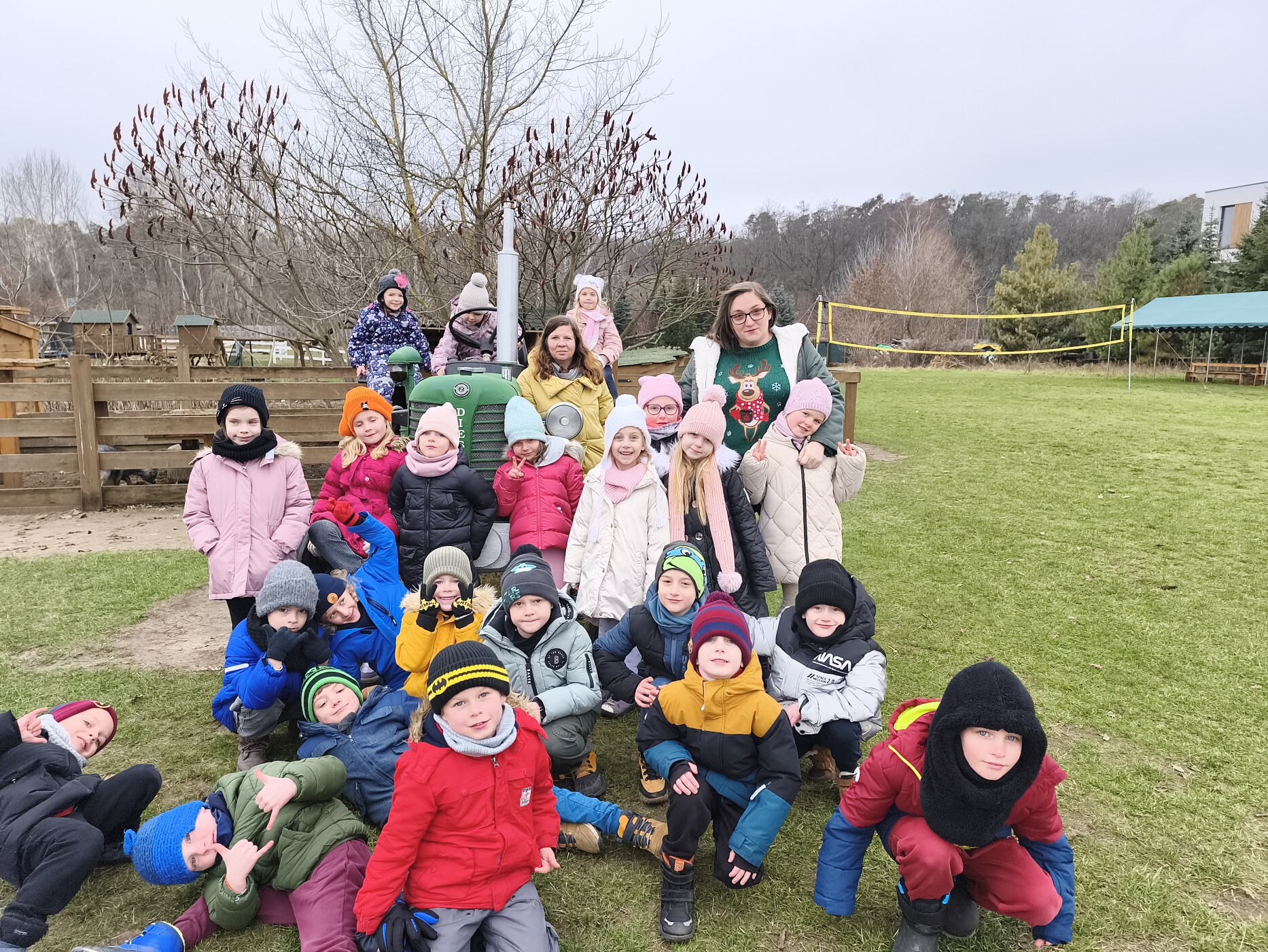 W grudniu wszystkie dzieci z oddziałów przedszkolnych pojechały na wycieczkę na farmę " Cztery Pory Roku" do Powsina.
