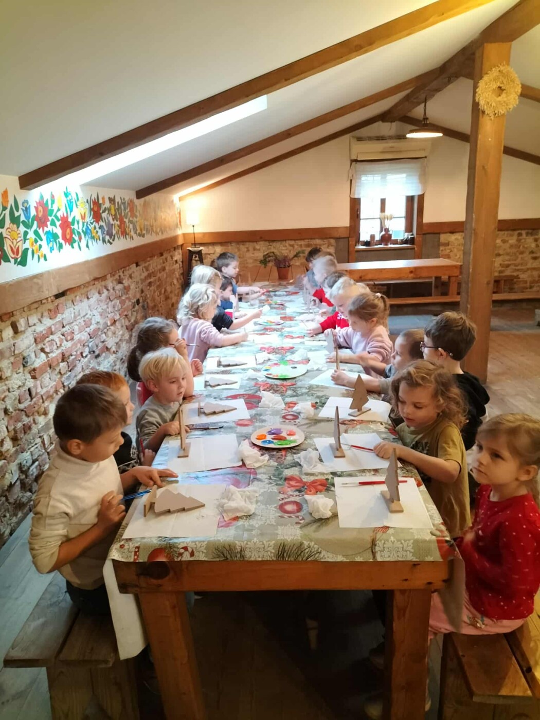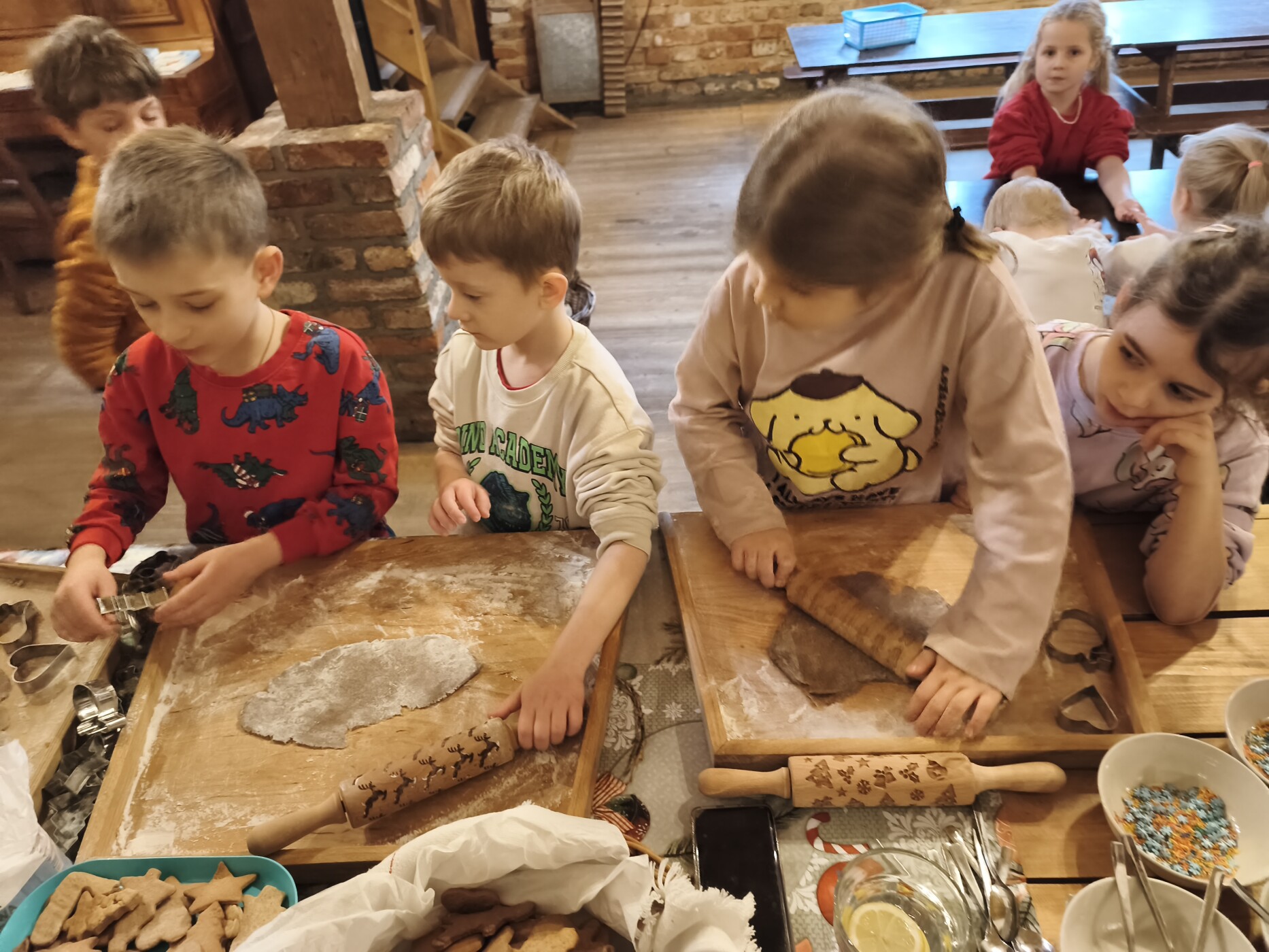 Tam czekało na nich wiele atrakcji: pisanie listu do Mikołaja, robienie pierniczków, malowanie choinek, zwierzątka oraz